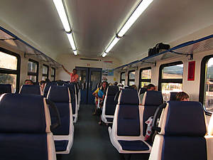 Час пролетел довольно быстро, и вот, мы уже стоит на платформе, в ожидании электрички. Людей оказалось не так уж и много, поэтому мы ехали в вагоне, заполненном на две третьих. Электрички на юге классные: новые и с мягкими сидениями!