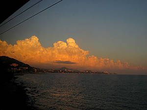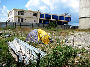 Итак, от таксистов мы отбились, сказав, что нам ничего не надо. Метрах в 50 от входа в вокзал располагается виадук, параллельно нему идет дорога. Мы стоим возле этой дороги и озираемся по сторонам. Что же, план на сегодня мы выполнили. Теперь необходимо подумать о ночлеге. От созерцания суеты, происходящей вокруг, уверенность найти здесь какой-нибудь дикий участок пляжа, где можно было бы поставить палатку, таяла на глазах.