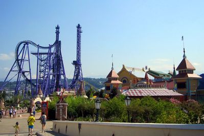 Три с небольшим года назад, когда был на Сочинской Олимпиаде, то, проходя по мосту, соединяющему входную часть Олимпийского парка и основные спортивные объекты, я каждый раз с интересом рассматривал вдали лихо закрученные конструкции ещё неработавших аттракционов какого-то нового парка развлечений. Вечером они притягивали мой взор еще сильнее, т.к. эффектно переливались в мощных разноцветных лучах прожекторов. Как же мне хотелось к незабываемым впечатлениям от Олимпиады добавить острых ощущений от катания на таких вот крутых американских горках! И тогда, стоя на мосту, я твёрдо пообещал себе (а может даже и поклялся) вновь вернуться в эти места. Однако монетку бросать не стал.