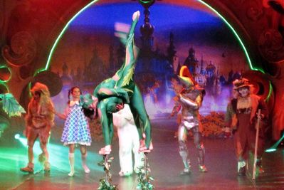 Кого аттракционы умотали уже до самой кочерыжки, для них, пожалуйста, различные бесплатные представления — 15 минут чудес от местного фокусника, или шоу дельфинов, или встреча с бабой Ягой, или цирковой мюзикл "Волшебник Изумрудного города", или... Всего не перечислишь. Но вот от цирка остался в полном восторге. С одной стороны, как бы и не было там фантастических трюков равных "Дю Солею", а с другой стороны, на удивление органично переплетались песни и танцы с акробатикой, эквилибром и воздушной гимнастикой, словно один номер плавно перетекал в другой. А какие были костюмы и грим у артистов! И самое главное — ни на минуту не становилось скучно.