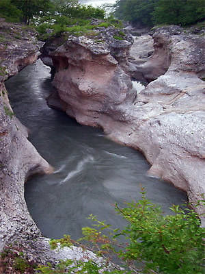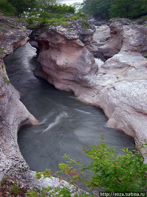 У поселка Каменномостский Белая около 400 м будет сражаться с узкими стенами глубокого каньона Каменный мост, уменьшаясь по ширине в 10 раз: от 40-60 м до 4-6 м. Древнее адыгейское название реки Белой – Шхагуаще. Одного единственного перевода этого названия мне отыскать не удалось. В сети его переводят и как «царица гор», и «как хозяйка гор», и даже как «княжна оленей».