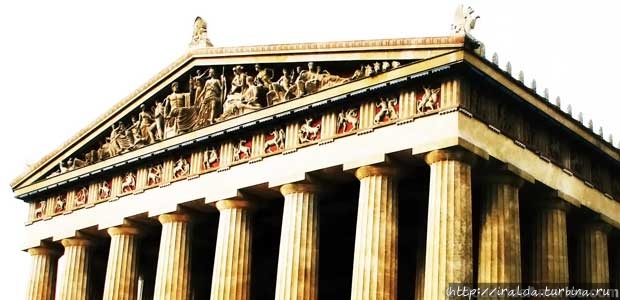 Античный Парфенон — главный храм в древних Афинах, посвящённый покровительнице этого города и всей Аттики, богине Афине-Девственнице, был возведен в середине пятого века до нашей эры по всем канонам дорического ордера архитектором Калликра́том по проекту Иктина. Предполагается, что и Фидий участвовал в разработке проекта и в дальнейшем руководил богатейшим скульптурным убранством и декором, тем самым впервые привнес в строгий дорический ордер неповторимые элементы изящества ионического ордера.