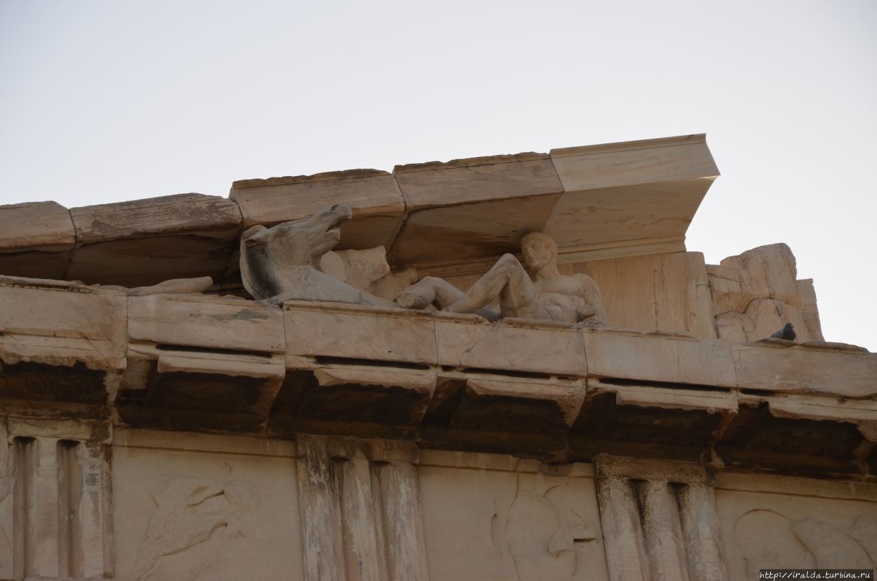 Парфенон был украшен таким скульптурным великолепием, что даже трудно представить! Скульптуры фронтонов, фриза и метоп были изготовлены Фидием и его учениками. Восточный, главный фронтон украшала композиция, изображавшая миф о рождении Афины из 50 скульптур. (фото из Интернета)