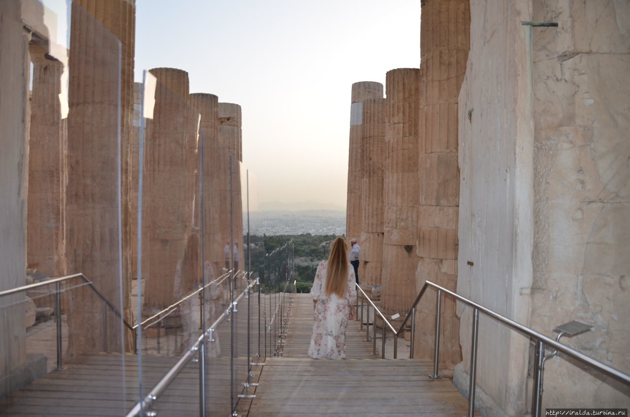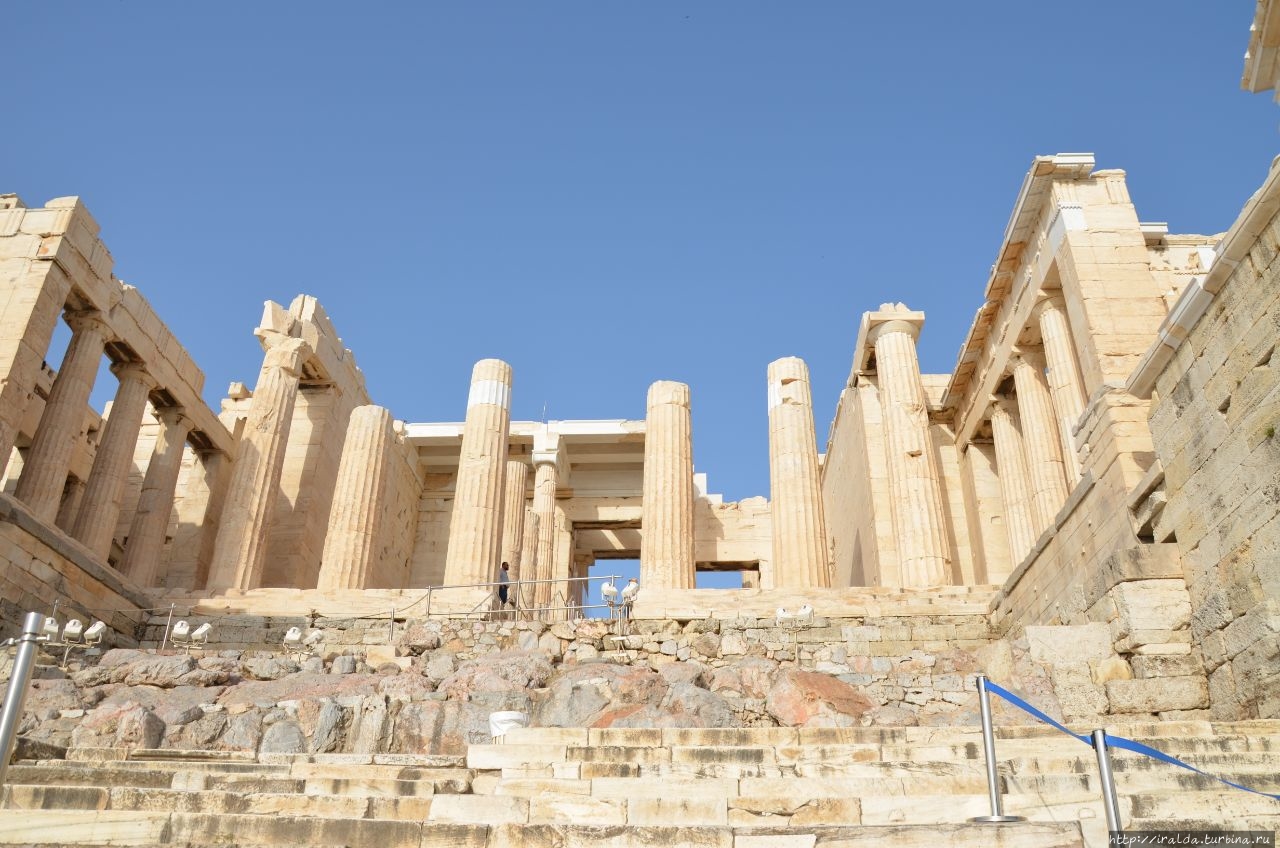 Дорога, ведущая к Акрополю подводит к площадке, над которой возвышаются Пропилеи.