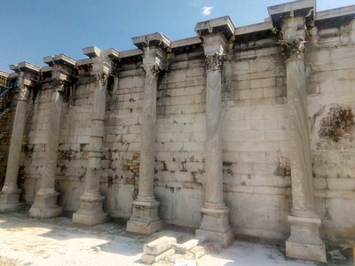 Придется поверить, что некогда это было монументальное и нарядное здание. Сегодня осталась лишь часть стены с колоннами из розоватого мрамора. Гладкие стволы этих колонн задерживают мой взор и безмолвно заявляют о своей многовековой красоте и о том, что они выдержали и выстояли несмотря ни на что!