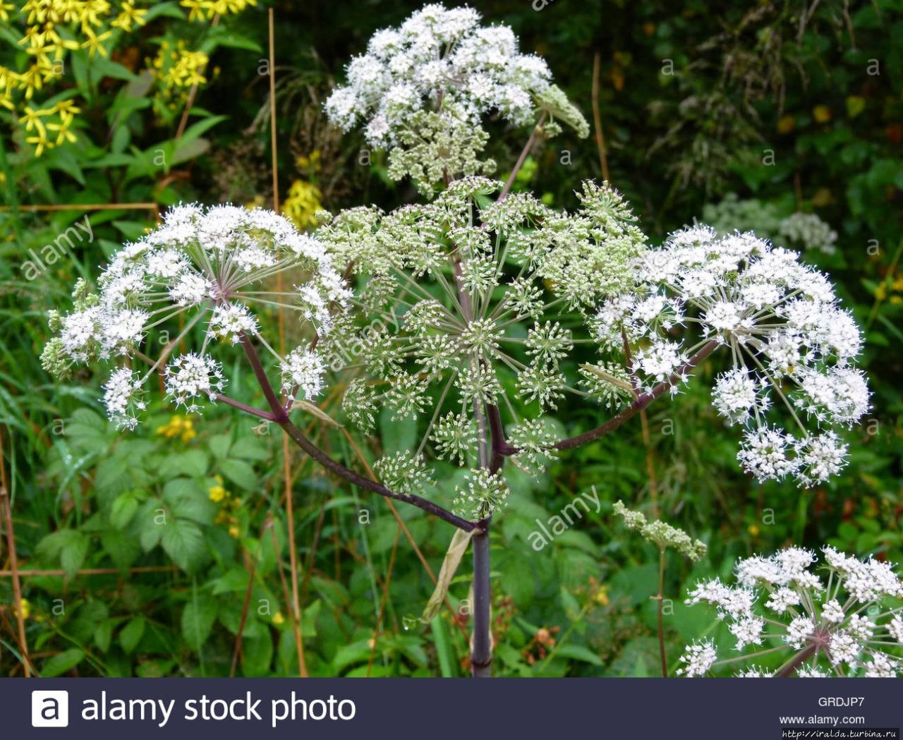 Или болиголов (Conium maculatum), ядом которого был умерщвлён Сократ.