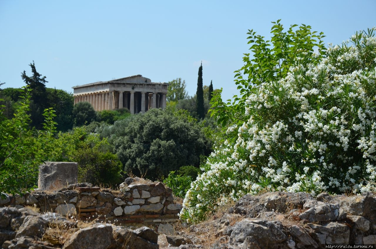 Какой товар ценнее на Древней Агоре? взгляд, время от времени, невольно уходит вверх — то на Акрополь, то на холм Агоры — Kolonos Agoraios, на вершине которого среди зелени возвышается единственный храм, выстоявший двадцать пять веков, вопреки времени и событиям.