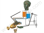 Его изобрел стратег Эниас. Это гениальный метод отправки заранее согласованных сообщений использовался в огромной империи Александра Македонского. На каждом сигнальном пункте стояли совершенно одинаковые цилиндрические емкости с водой, уровень которой был четко обозначен. Открывая кран для спуска воды, в центре сосуда опускался поплавок с насечками, где на каждом уровне насечки была высечена конкретная согласованная информация. Синхронизация действий передачи и приема информации осуществлялась при помощи поднятого факела. ( фотография из Интернета)