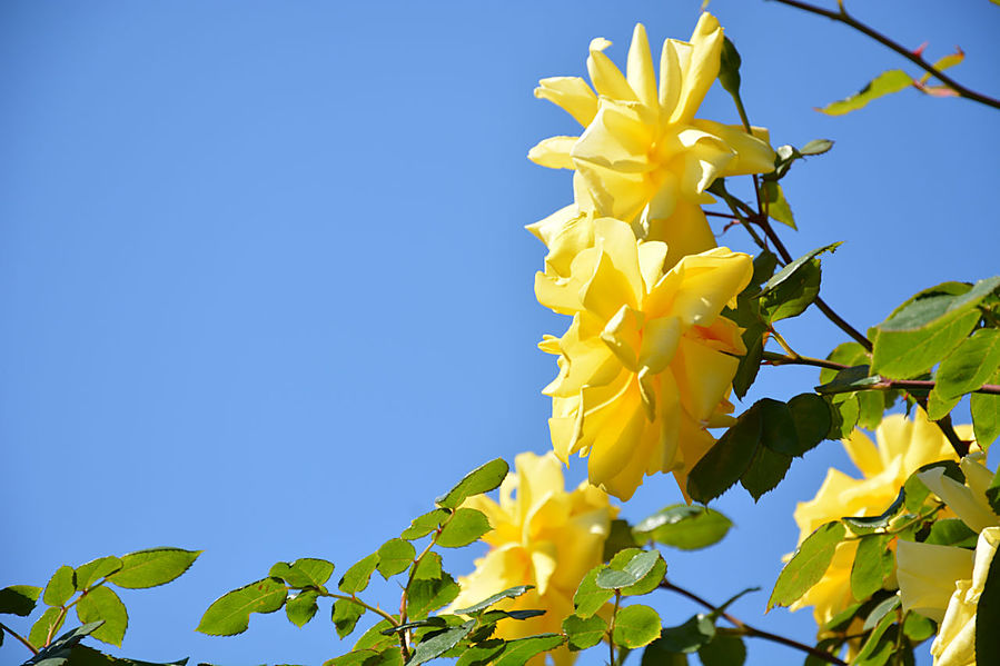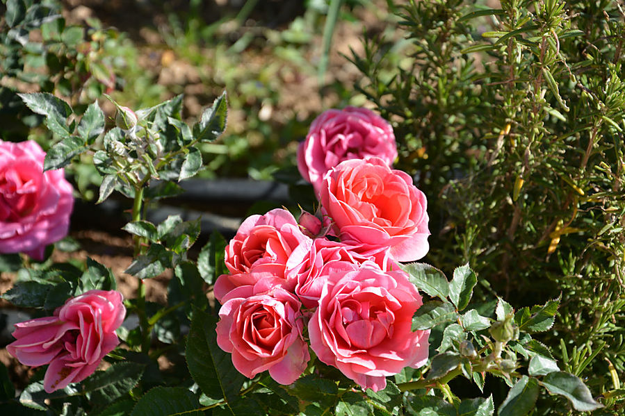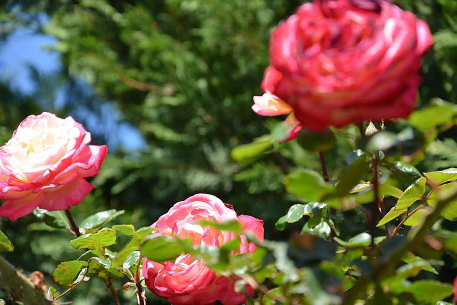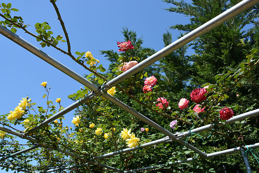 Очень много цветущих роз обвивающих фасады домов, арки над входом в дом, заборы.
