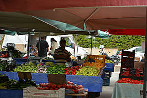 Спустились с горы и в центре поселка попали на рынок.