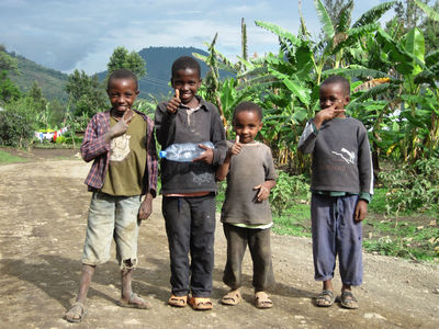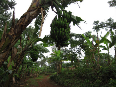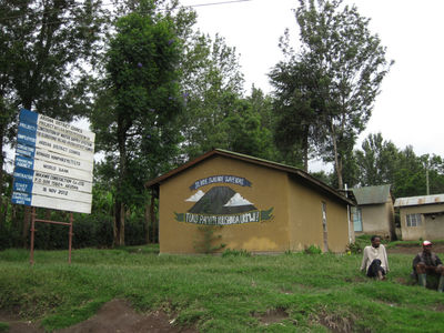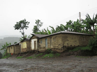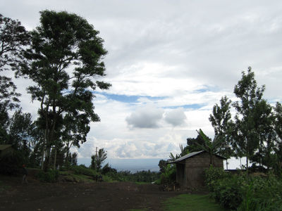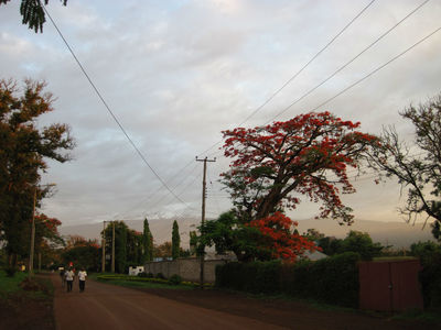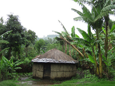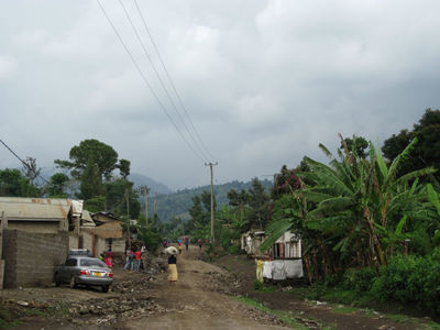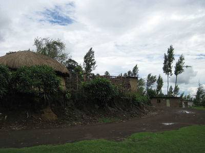Иду по улице вверх, туман расступается, показался Меру, выглянуло солнце и сразу стало всё вокруг закипать… Чем выше от центра Аруши поднимаюсь в гору, тем беднее домики и радушнее местные жители, вот остановился у колонки — умыться и помыть фрукты – сразу набежали дети, теперь они идут за мной… Поднялся я на несколько километров вверх, стало прохладнее, снова набежали тучи и полил супер-ливень, ребятишки разбежались, а я добежал до хижины какой-то, у ребенка прошу позвать хозяина. Вышла молодая женщина, открыла мне сарай, разрешила там дождь переждать. Живут тут люди довольно зажиточно, на склоне вулкана много плодородной земли, круглые опрятные домики из цемента с железными крышами среди банановых деревьев, чисто и не жарко, теплые дожди- африканский рай.