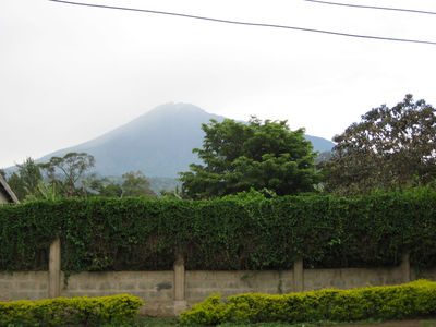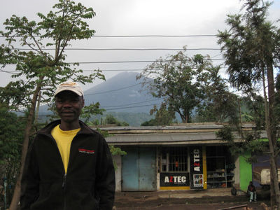 Спускается дорога вниз, становится теплее, приехали в Арушу. Небо здесь хмурое, Меру скрыт низкой облачностью. Узнаю направление к вулкану у местного автобусного зазывалы, и по пути захожу в кафе — едят тут одно мясо в каком-то остром соусе, стоит еда примерно два доллара… Здешние люди на вид подобрее и помягче чем кенийцы, да и не такие черные — здесь и не жарко.