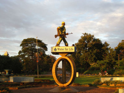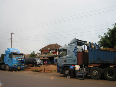 Перед дорогой решил подкрепиться, — в бомжеватой придорожной харчевне туча мух, валяются обглоданные кости на земляном полу, и подают только одно блюдо – острый бульон из вареных потрохов, нет ни хлеба ни овощей. Заметил за эти дни в Африке,- не особо тут заморачиваются с рецептами, едят, что попроще, — варено-жаренное мясо неизвестных животных (а может и людей:)) – часто единственная еда. Фрукты и овощи довольно редки, да и стоят не дешево. Вода тоже дефицит, бутылка воды стоит дороже, чем единица еды в народном общепите…