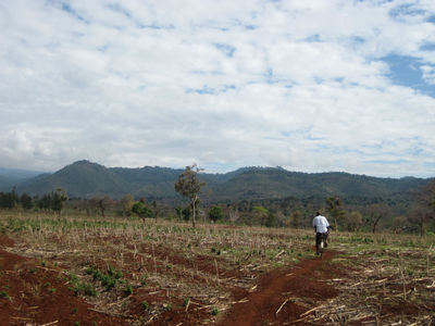 Солнце затмило небо, — началась жуткая африканская супер-жара. Место, где была видна Килиманджаро, затянуло тучами. Дорога идет в гору, постепенно сухая саванна сменяется кустарником, внизу – на дне оврага колючая заросль и ручей, спросил дорогу у встречных сборщиков хвороста – есть одна тропа прямо к Кили… Тут уже и почва не такая сухая и безжизненная, близок влажный горный Лес.