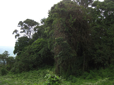 Ближе к вулкану плантации закончились, грунтовая дорога превратилась в горную лесную тропу – начался влажный тропический лес. Лес – чудо! Первый раз я увидел настоящий африканский Лес – огромные деревья, трава выше человеческого роста, пробираюсь вверх по тропе – прохладный влажный сумрак, насекомых нет, иногда накрапывает дождь – открывается панорамный вид на долину Аруши, где то там кратер Морогоро — вот они — «Зеленые холмы Африки»!