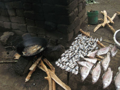 Первый мини-базарчик, — продают здешние плоды – помидоры и бананы, цены совсем дешевые, но, чем ниже спускаюсь, тем больше признаков цивилизации, и цены становятся дороже. Вот большой базар на MOSHI ROAD, здесь дорога в соседний городок Моши, что у подножия Килиманджаро. Решил на рынке перекусить, заказал африканской тетеньке пожарить две рыбины в пальмовом масле, помыл руки стиральным порошком, выделили мне стул, отогнали мух и получился прямо у костра мини-ресторан для белого человека, тут уже окончательно исчез мой трусливый «расизм», Африка стала мне родным домом!