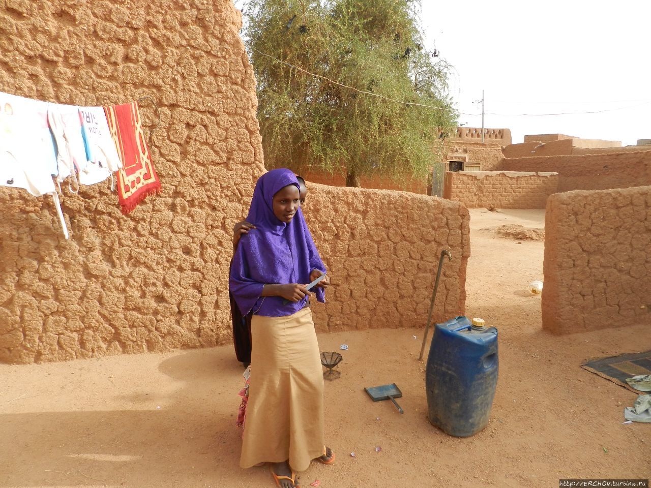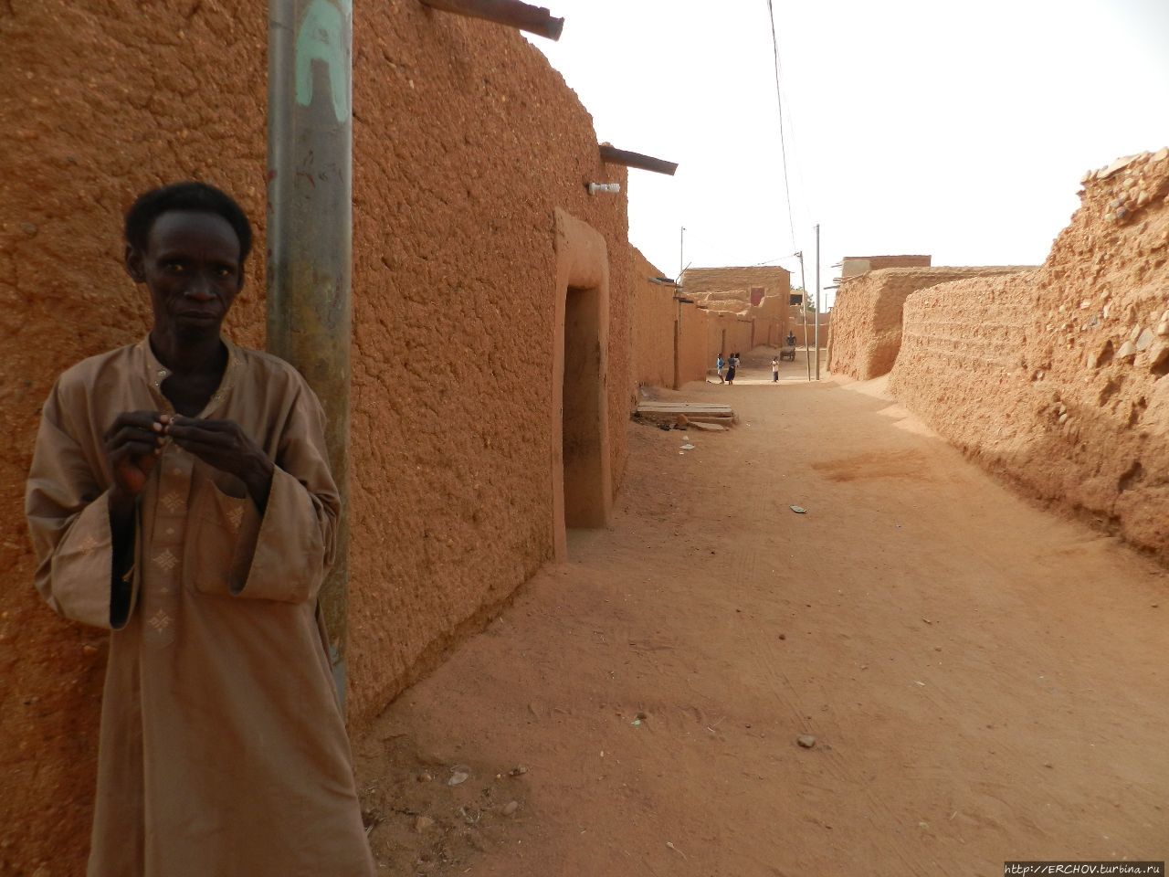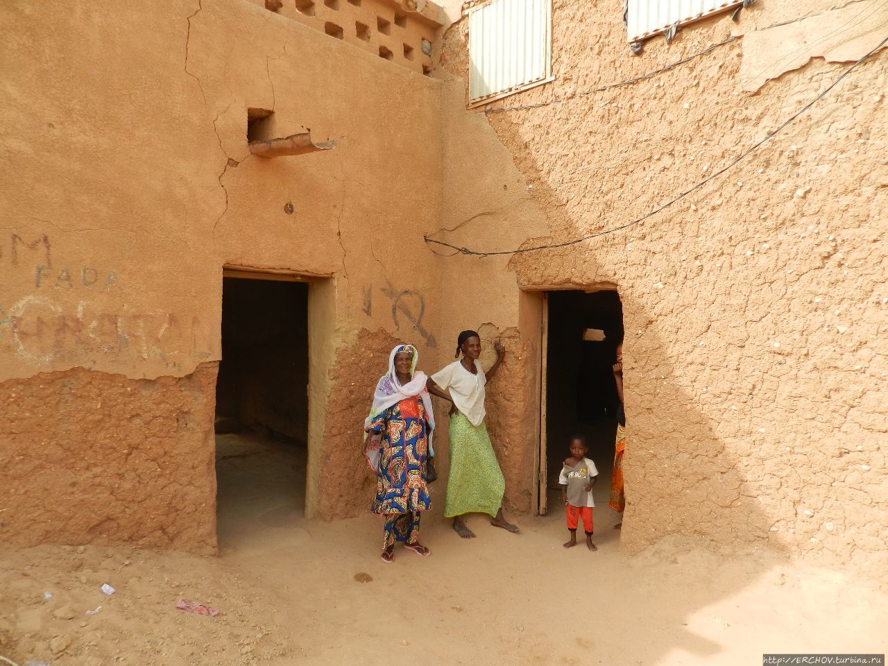 Прогулка по старому городу, но есть и отличия. Если в Тимбухту дома строят из блоков, и далее ты эти самые глиняные блоки на зданиях видишь, то здесь швы и стыки стараются замазывать. Ещё одно отличие: в Тимбухту хозяева домов стремятся как можно красивее обделать двери и окна. Здесь же, дабы спастись от жары, окон практически не делают. Элементы декора создаются на крыше, на фасаде, либо на заборе — из глины. Ощущение полёта, увы, не возникает.На вид подобный малоузорчатый орнамент кажется немного грубоватым, либо размытым от дождя. В любом случае, это суданский стиль архитектуры. И он по своему оригинален. Одним словом, Агадес хотя и называют побратимом Тимбухту, но на него он мало похож, зато имеет много общего с малийским Дженне.
