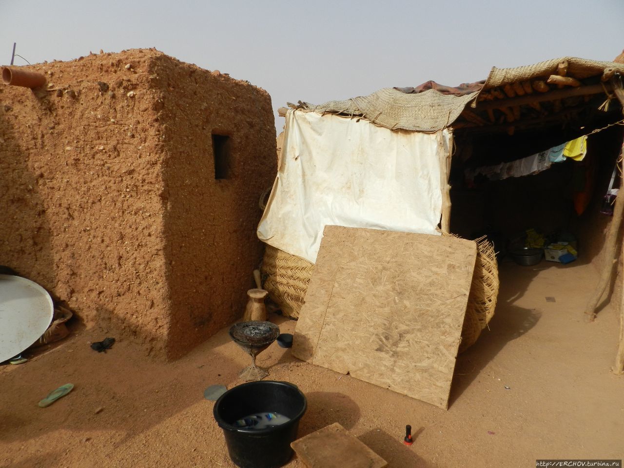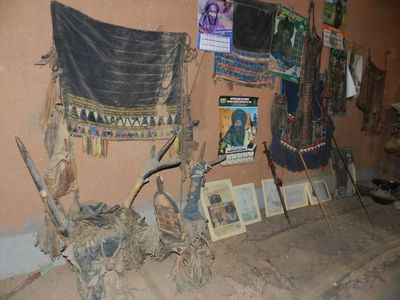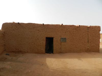Прежде чем попасть на территорию, вновь пришлось пройти через небольшой домик (подобное мне доводилось видеть в Мали и в Гвинее). Далее весь дом оказался разделён на так называемые пространства под открытым небом. На улице и спали, и ели, и посуду хранили. Были здесь ещё и другие маленькие домики, внутри коих кроме циновки абсолютно ничего не было. Единственным ценным предметом, на который могли бы теоретически покуситься воры, оказался электросчётчик. Электричество в дом было проведено, по местным меркам это уже определённый статус. Однако, ни розеток и висящих ламп я не обнаружил. Правда над одним из помещений висела телевизионная тарелка, но хозяин нас туда не пустил.