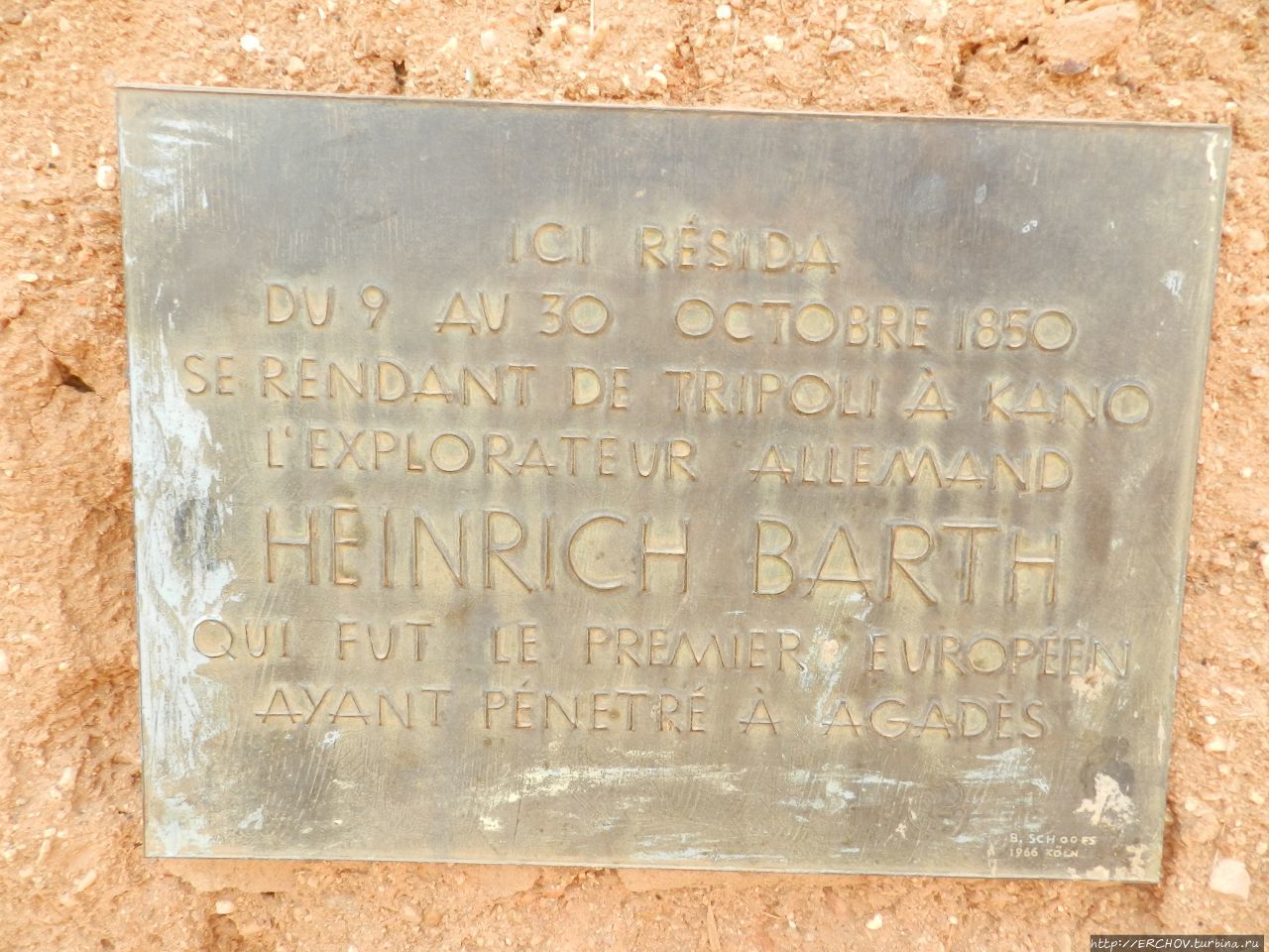 Нет, конечно что-то где-то размывалось дождями, но далее восстанавливалось точно также. Али подводит нас к серой прямоугольной коробке. Окон на доме не видно, зато возле двери висит табличка: в октябре 1850 г. в здесь жил Генрих Барт.