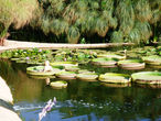 По берегам расположены развлекательные площадки (игровые городки, территории мастер-классов, пространства с кривыми зеркалами и т.д.). Есть еще водоёмы без крокодилов, но с интересной растительностью, т.е. нечто типа водного ботанического сада. Например, там можно увидеть знаменитую кувшинку Викторию Регию (насколько я помню, именно так зовётся эта представительница флоры?!), листья которой выдерживают вес ребёнка. Для наглядности на живой "плот" посадили куклу...