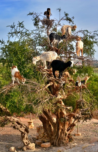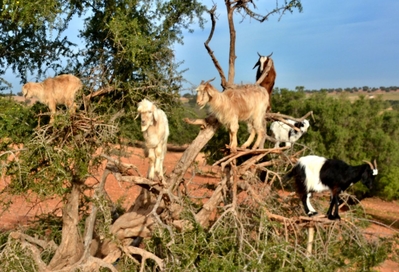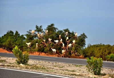 Большое количество деревьев, иногда, с вырубленными в них рядами, растёт на пути из Эс-Суэйры в Агадир. Местные пастухи уже давно превратили привычное для них зрелище – козы на деревьях, в туристический аттракцион. Редкая машина промчится мимо такого милого зрелища – разноцветные козочки разных возрастов на ветках арганы!