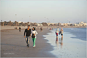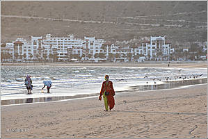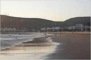 Зная печальную историю города, я воспринял его всего лишь, как удобную стартовую площадку, чтобы выстроить круговой маршрут по всей стране. Я не стал снимать город. И даже не полез на гору, где расположена восстановленная крепость. Из нее открывается традиционная для курортных городов панорама — пляж с заливом и многочисленные отели (см. фото в интернете). Меня уже в первый день влекла расписанная в многочисленных восторженных красках Эс-Сувэйра, расположенная от Агадира в 170 км.. А также — все старинные города первой части маршрута, так удобно выстроившиеся в одну линию — вдоль побережья Атлантики. А пока — прогуляемся по пляжу Агадира, который в последнее время притягивает российских туристов...