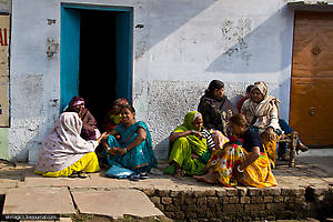27. Раджастанские женщины торгуют. Они не носят сари или сальвар-камиз, их одежда это — шарф на голову, туника и широкое платье.
