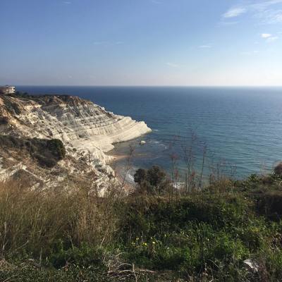 Мраморный белый утёс Scala dei Turchi — находится на берегу около небольшого города Punta Grande на расстоянии 13 км на западе от Agrigento. На юге провинции Agrigento вся территория в глубине под поверхностью почвы состоит в основном из белого мрамора, который проявляется в некоторый местах на берегу моря белоснежными полосами. Фотографии сделаны в феврале.