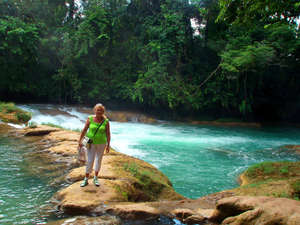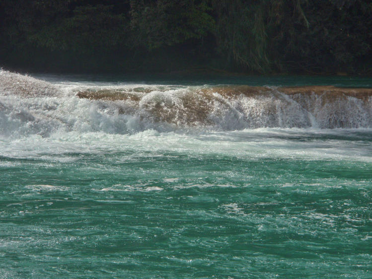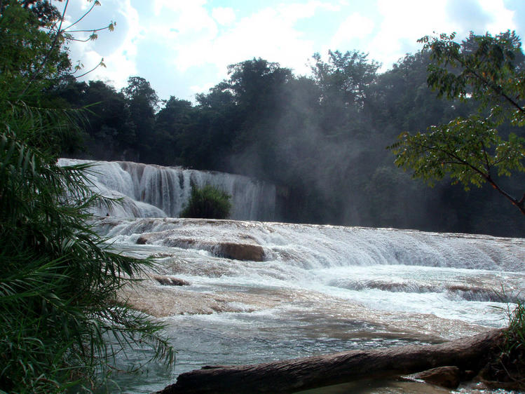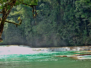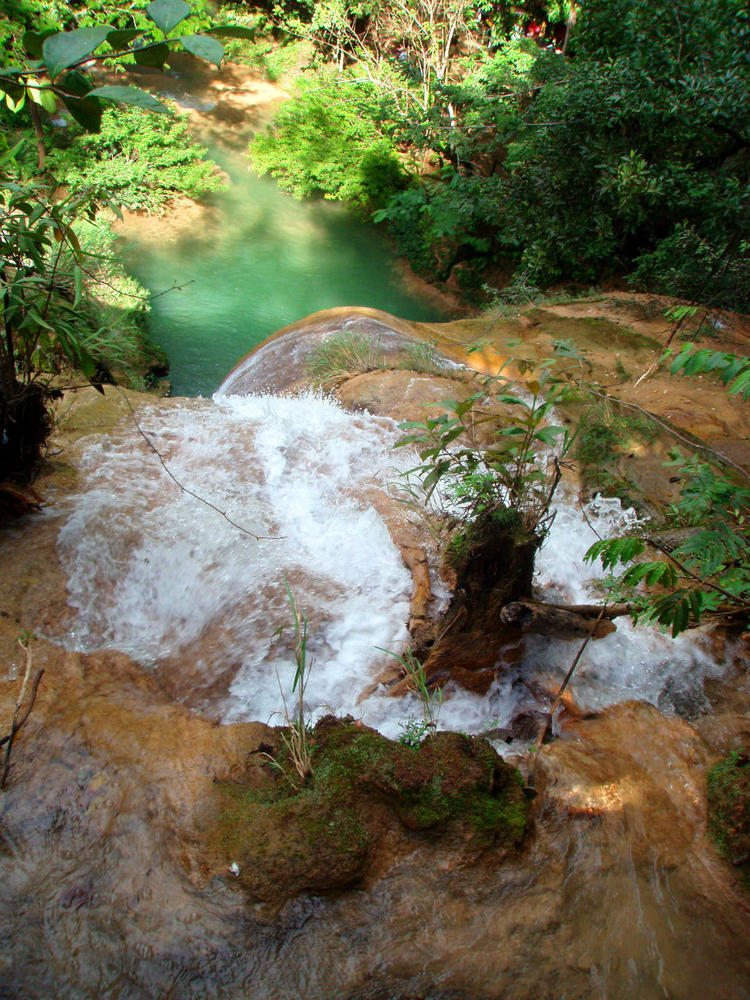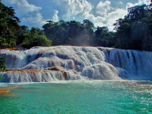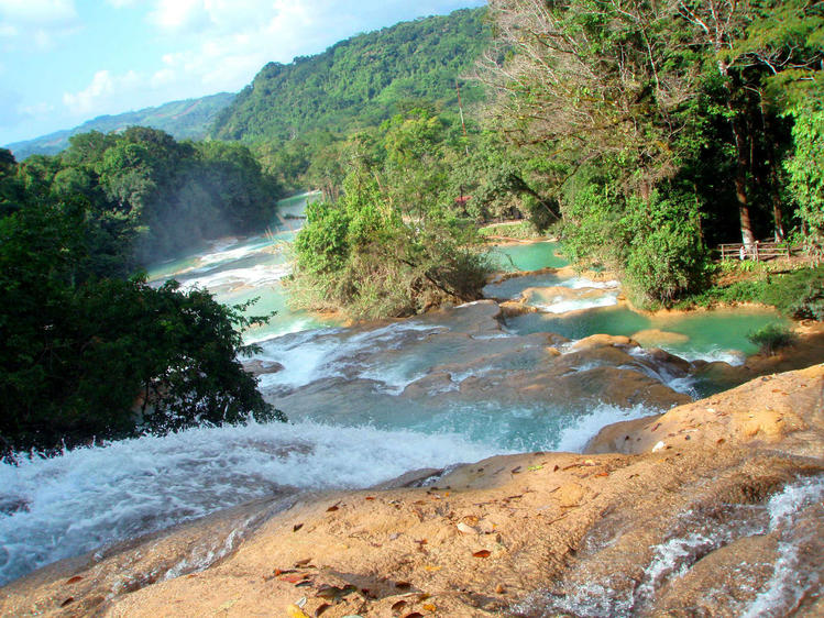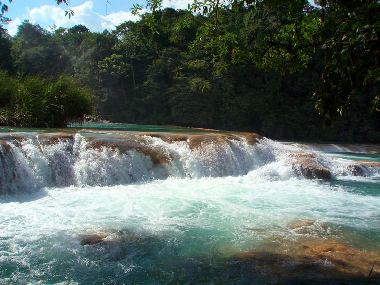 Живописный каскадный водопад Агуа-Асуль тянется вдоль русла реки Яксха,