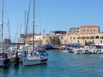 Советую перед отплытием запастись питьем, так как на катерке нет буфета. На всем протяжении прогулки вы сможете наслаждаться видами хайфского порта, пригородами, а на подходе к Акко увидите стены средневековых укреплений города, рыбацкие лодки и раскинувшиеся возле причалов арабские ресторанчики. Но о бренном позже.