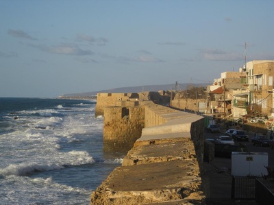 Прекрасные виды моря с виднеющимися вдали очертаниями Хайфы, старые, местами полуразрушенные стены, о которые с упрямым постоянством разбивались набегающие волны, набережная с постройками старого города и…относительное туристическое малолюдье, отчасти, возможно, объясняемое наступающим на пятки пятницы шабатом.