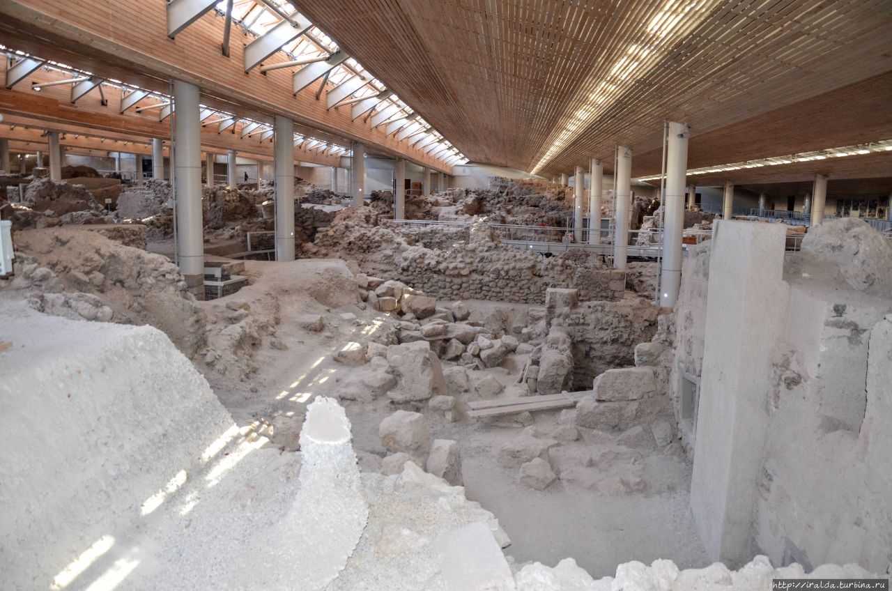 Под многометровым слоем лавы и пепла оказалось погребенным цветущее поселение минойской эпохи. Античный город Акротири был важным торговым центром восточной части Средиземного моря в период 1700 — 1600 г. до нашей эры, богатым и процветающим до тех пор, пока извержение вулкана не прекратило его существование.