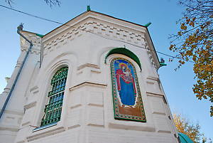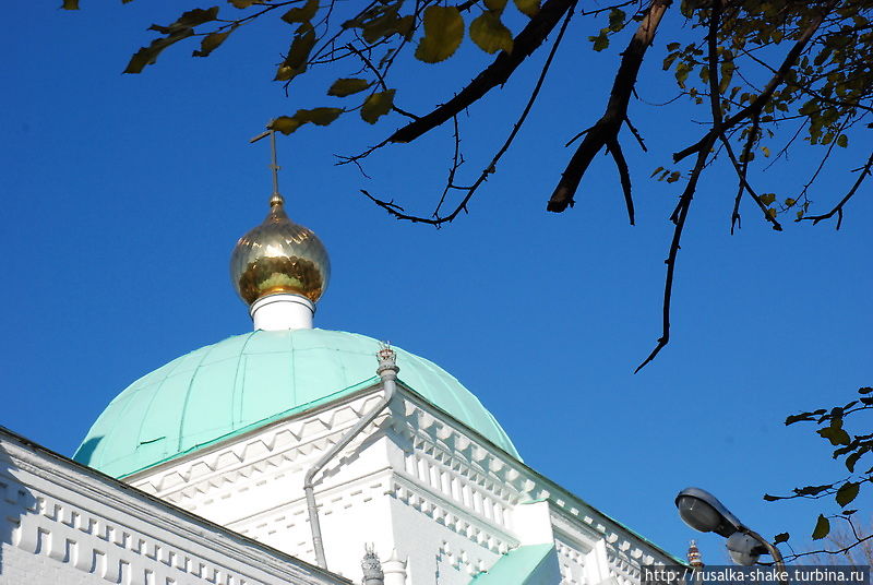 К тому времени, как я проходила мимо него, он был уже закрыт. Поэтому внутрь попасть мне не удалось. Но и снаружи он был красив. Вокруг были посажены розы. На территории, совсем рядом с храмом расположен колодец. Весь двор был усыпан осенними листьями...