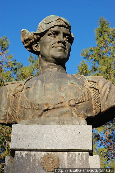 На центральной площади города Аксай стоит неприметный бюст, в окружении елок, лип и каштанов. Даже не совсем на площади, а точнее, в небольшом парке.
