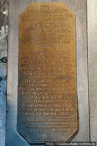 Николай Дмитриевич Гулаев (1918—1985) — лётчик-истребитель, дважды Герой Советского Союза, третий из советских асов по числу сбитых самолётов в годы Великой Отечественной войны, генерал-полковник авиации. Всего за годы войны произвёл 250 боевых вылетов. В 69 воздушных боях сбил лично 57 самолётов противника и 4 — в группе, что сделало его третьим по результативности среди советских асов (первый — И. Н. Кожедуб — 62 лично сбитых самолёта; второй — А. И. Покрышкин — 59 лично сбитых самолётов).