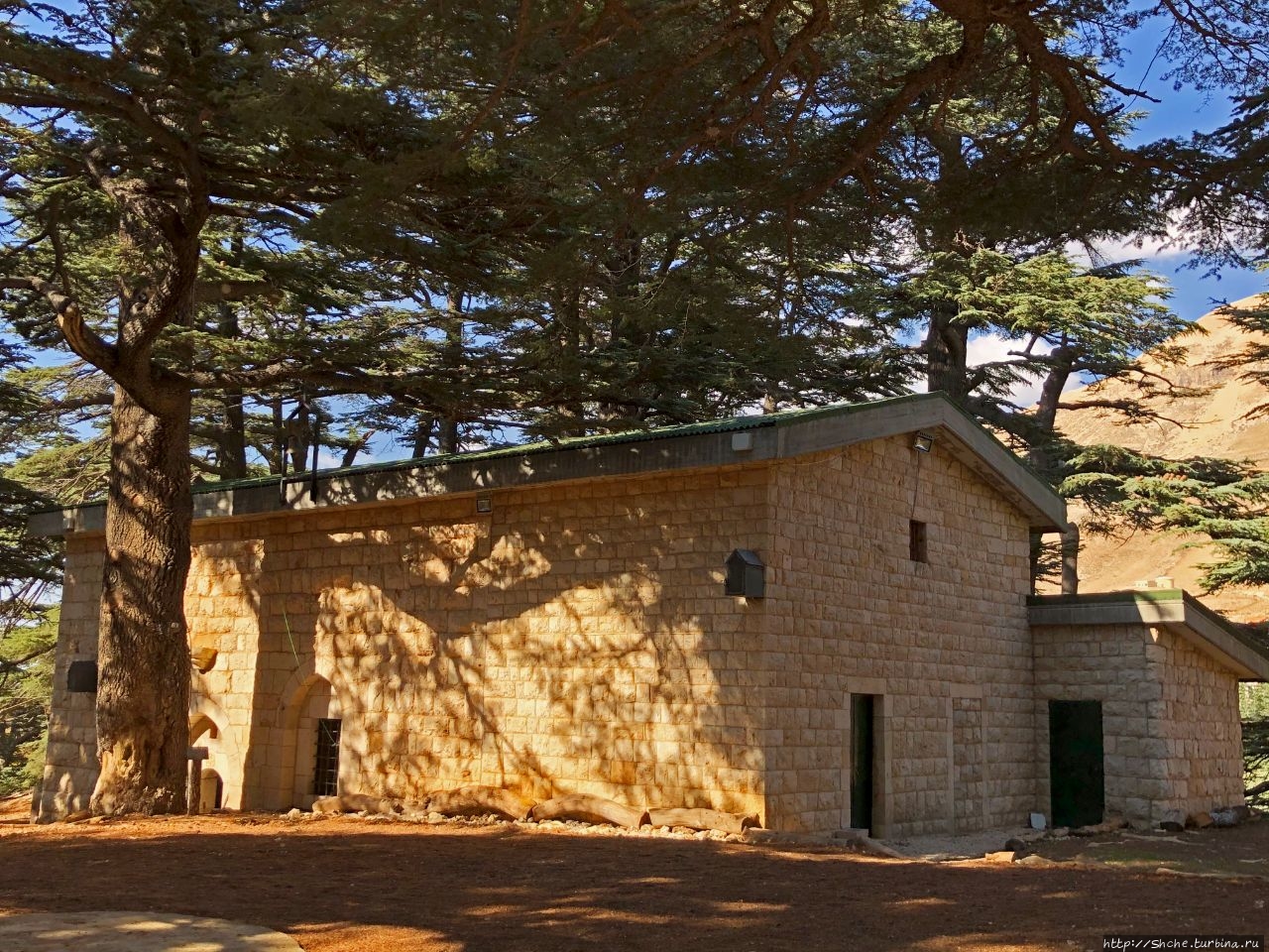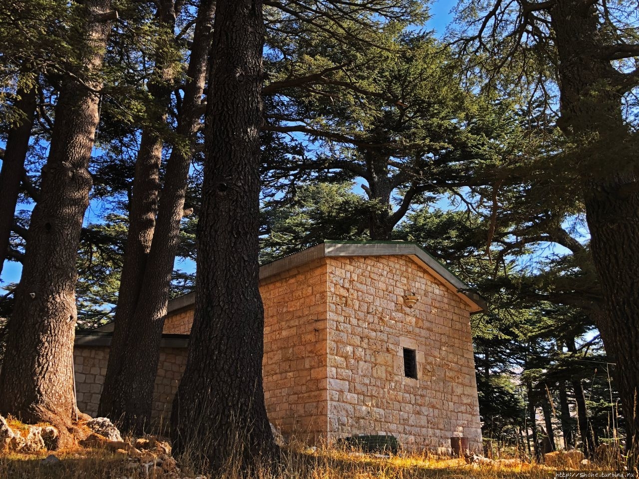 "Дерево Иисуса" в заповеднике "Божественная кедровая роща"... ... небольшое строение из местного камня (благодаря чему оно так удачно мимикрирует в роще).