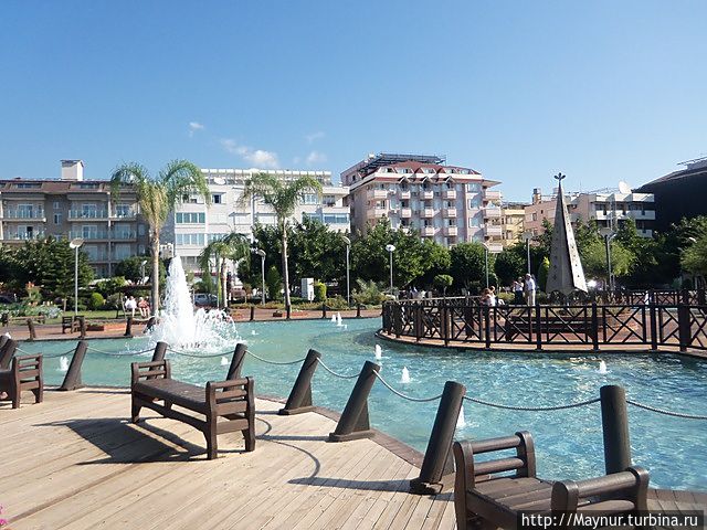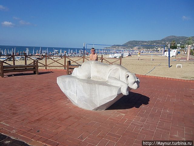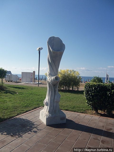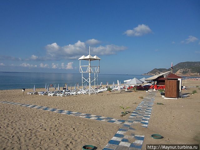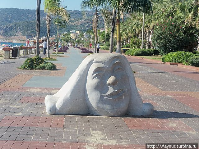 Заходить в курортные города не наша " тема ", но желание увидеть крепость забросило нас в г. Алания. Поселились в аппартаментах практически в самом начале пляжа , что позволило утром следующего дня неспеша исколесить вдоль и поперек набережную, ведущую в сторону крепости. Набережная очень красивая. Много зелени, цветов, продуманных зон отдыха — можно отдыхать душой и телом. Пляж в это время еще пустовал, но закусочные и бары уже работали , да и народ потихонечку подтягивался к морю. Надо отдать должное пляжу — море у берега неглубокое , дно песчаное, ровное — купаться одно удовольствие. Для меня , живущей у холодного , даже летом, Охотского моря , теплая вода в конце октября , как подарок судьбы. И с песком на пляже не обманулась- чистый мягкий и действительно золотистый.
