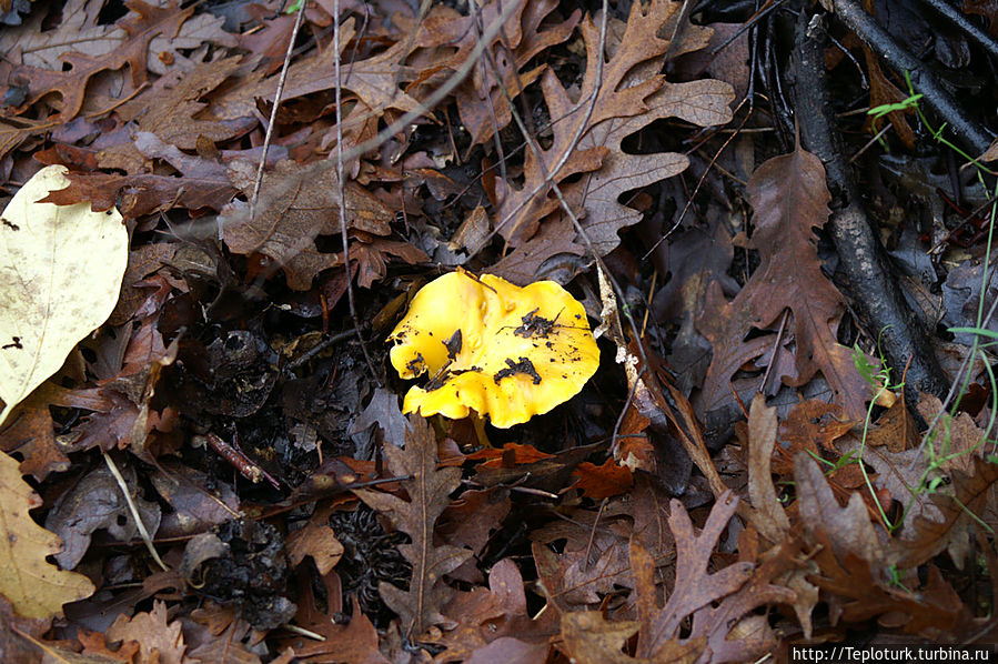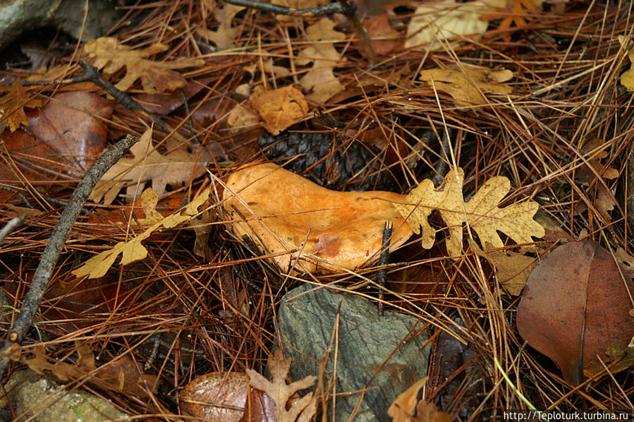 Вскарабкавшись на огромную сосну, под опавшими иголками и листьями кустарника я увидел первые грибы — это несъедобные. Все грибы, в которых не уверен или не знаю, я отношу к несъедобным, так спокойнее. Хотя в России собирают белые шарики дождевиков, грибы — навозники,похожие на мухоморов, но это не мои грибы. Мне нравятся рыжики, белые — боровики, красноголовики и подберезовики. В турецких горах Торос я не нашел еще ни одного съедобного гриба, но они же есть, это точно! Пройдя по скользким склонам, покрытым слоями опавшей хвои, несколько шагов, я нахожу... лисичку. Этот красивый гриб ни чем не отличается от нашей российской родственницы. Но вот и первые шляпы рыжиков. Грибы крупные и их много. Отсортировав червивые, иду дальше и нахожу масленка. Скользкая шляпка этого гриба покрыта слизью, с прилипшей землей и хвоей. Не всем нравится его обрабатывать, но всем нравится его кушать. За полчаса насобирал полный капюшон своей ветровки, теперь попадет от жены за измаранную вещь. Но, думаю, она меня простит, потому что на ужин у нас сегодня будут жареные с картошкой грибы. Жаль не успел сфотографировать полную сковороду, пока бегал за аппаратом большую часть грибного деликатеса слопали.