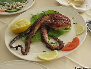 А этого осьминога мы ели в Саранде. Если осьминога правильно приготовить, то он будет очень вкусным.
