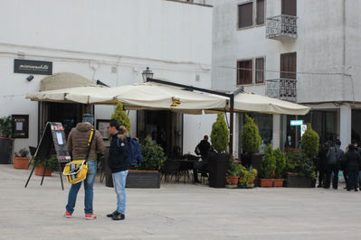 Далеко от района трулло мы не отошли. Через 2 квартала мы вышли на площадь, где было поменьше народу, муниципалитет и карусель.