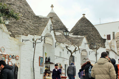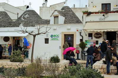 Увы, эту картинку я не увидела. А было очень холодно и серое, в тучах, небо. И еще, несмотря на то, что приехали не в сезон, нарду было очень много. Это был последний день пасхи, выходной. И местные жители вышли погулять. И жители Альберобелло, и из других уголков страны.