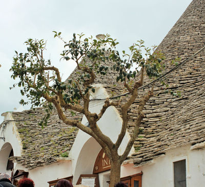 Всем туристам тут рассказывают интересную сказку: В 16-м веке некий Андреа Маттео III, аристократ из Неаполя, не хотел платить налоги своему королю. Поэтому он не разрешил своим крестьянам строить постоянные дома. Но жить где-то надо? Тогда бедняги собрали куски известняка и сложили из них домик, не скрепленный раствором. Чтобы развалить это строение, достаточно было вытащить снизу один камень. Раз – и вместо дома груда камней.
