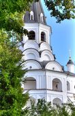 над которой три ряда кокошников, а завершает сооружение восьмигранный ярус звона,