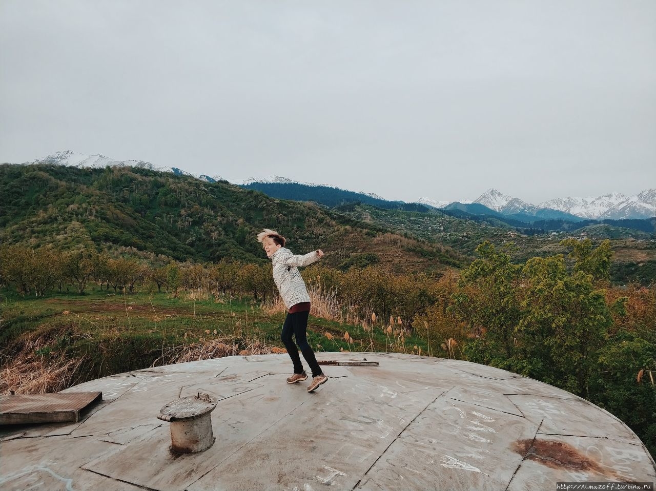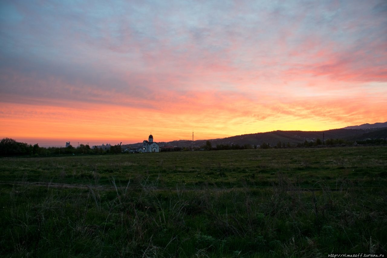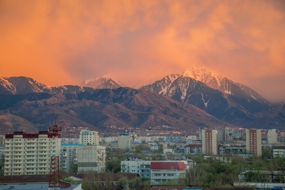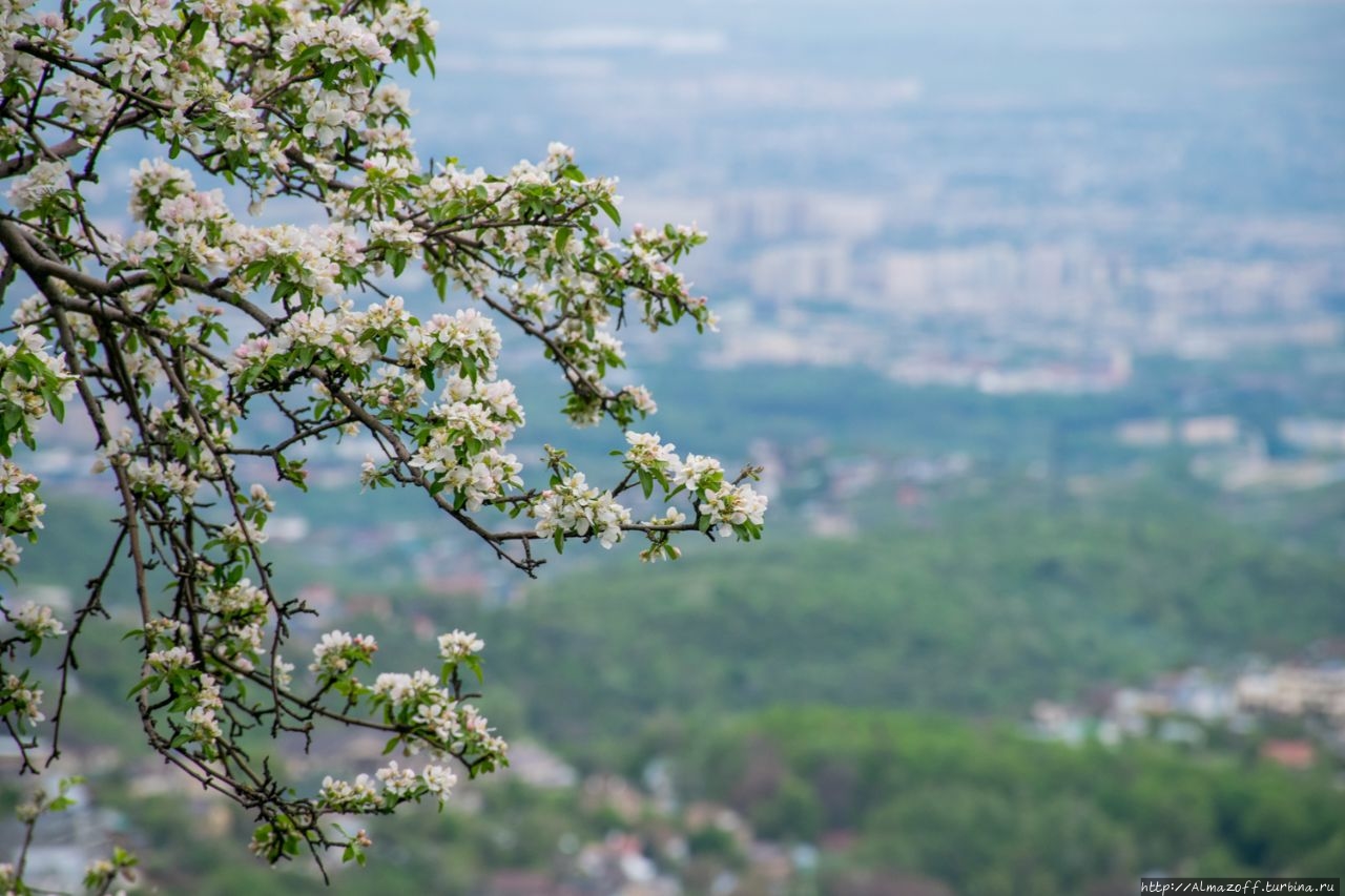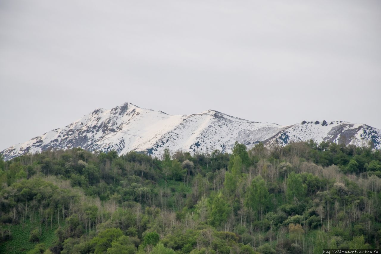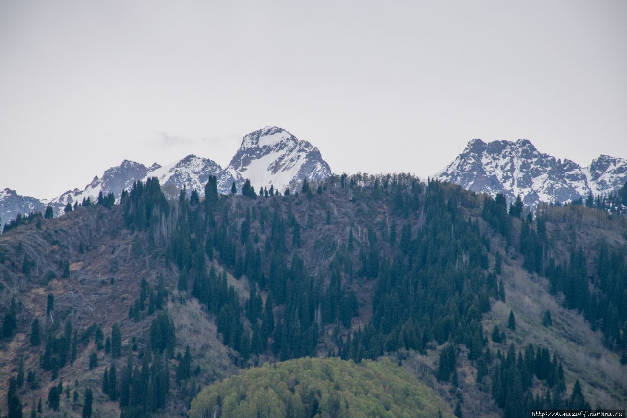 Самая красивая часть рассвета застала нас в дороге и сопровождалась пением петухов и криками павлинов (!). Это всё произошло в районе посёлка Алатау в верхней части города, рядом с предгорьями Заилийского Алатау.