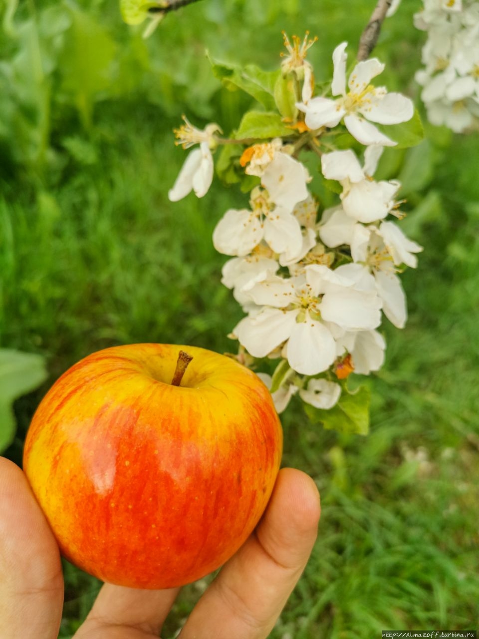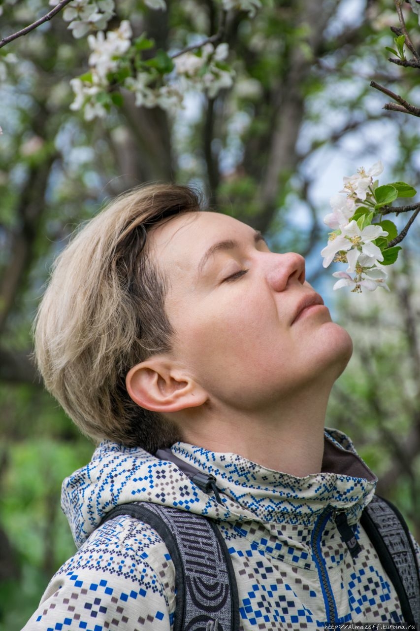 Пешком через цветущие яблоневые сады.