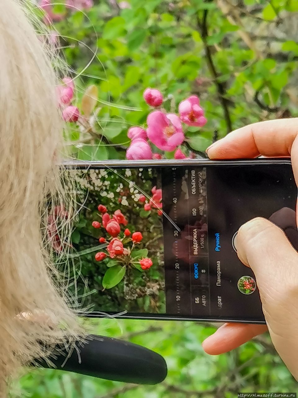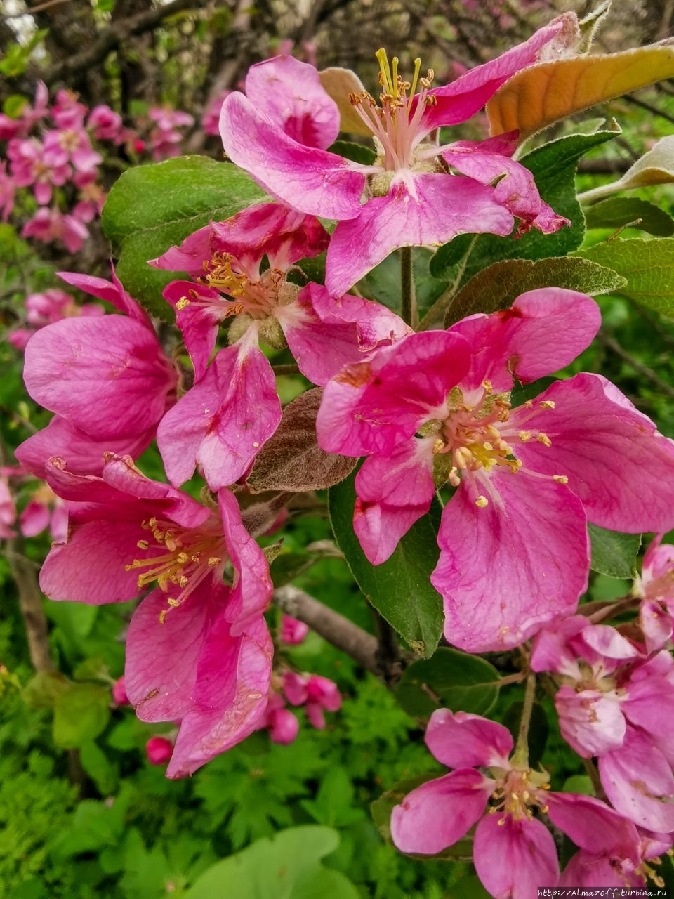 Но самым большим украшением стала яблоня с красными цветами! Это большая редкость!