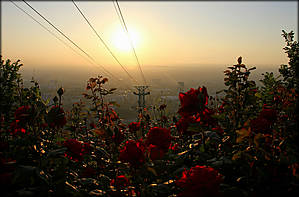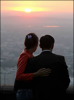 Второй раз я поднялся сюда вечером. Удалось увидеть солнце, садящееся за горизонт города Алматы.