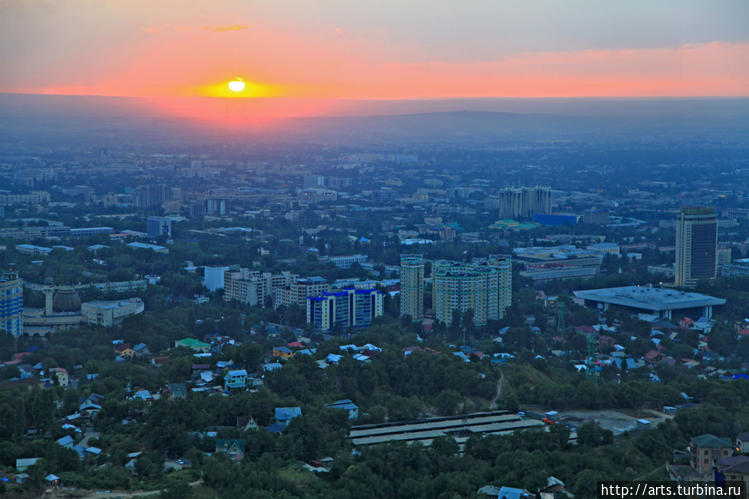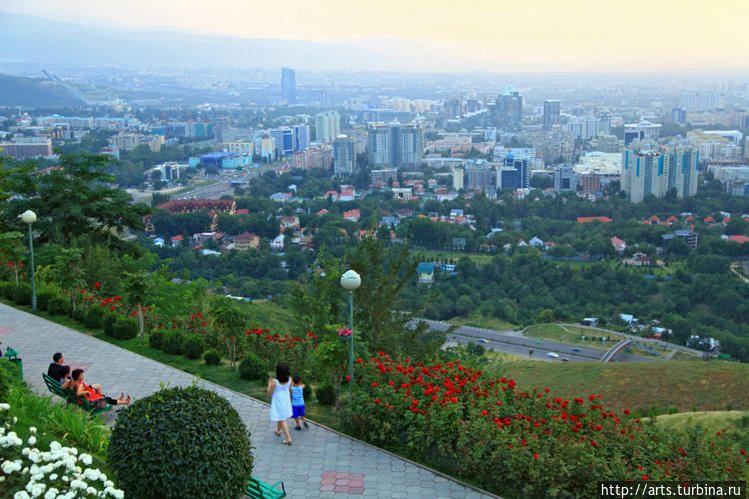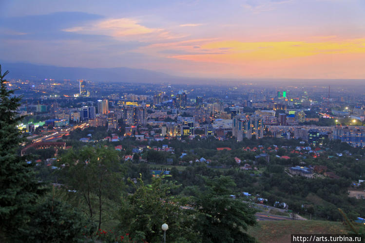 Советую подняться на Кок-Тобе именно вечером, особенно красиво на закате, великолепная панорама, весь Алматы как на ладони.