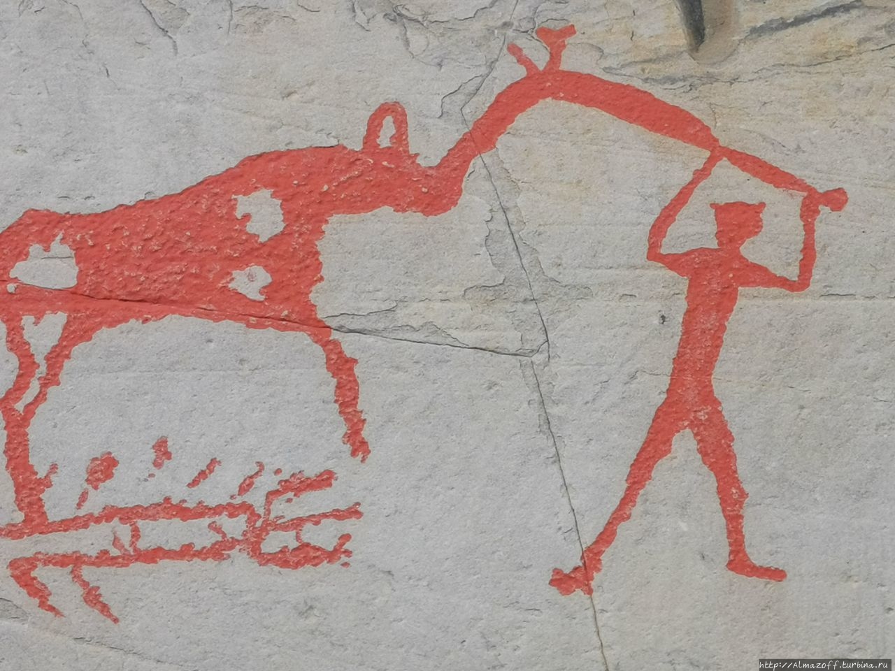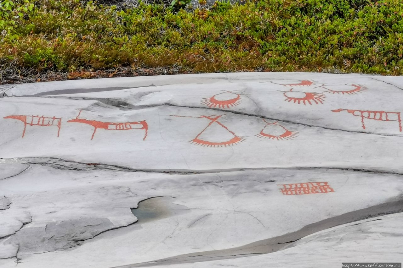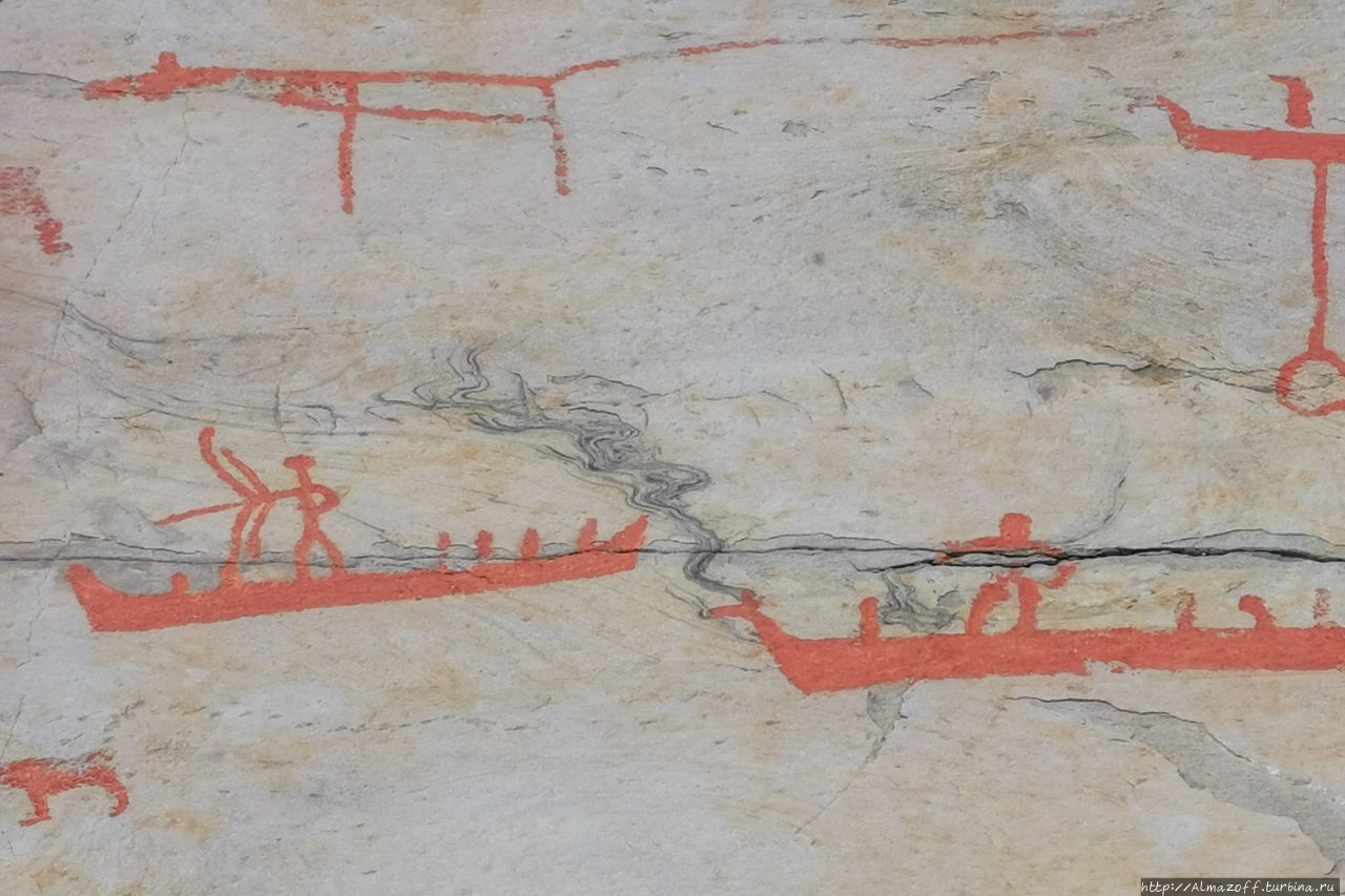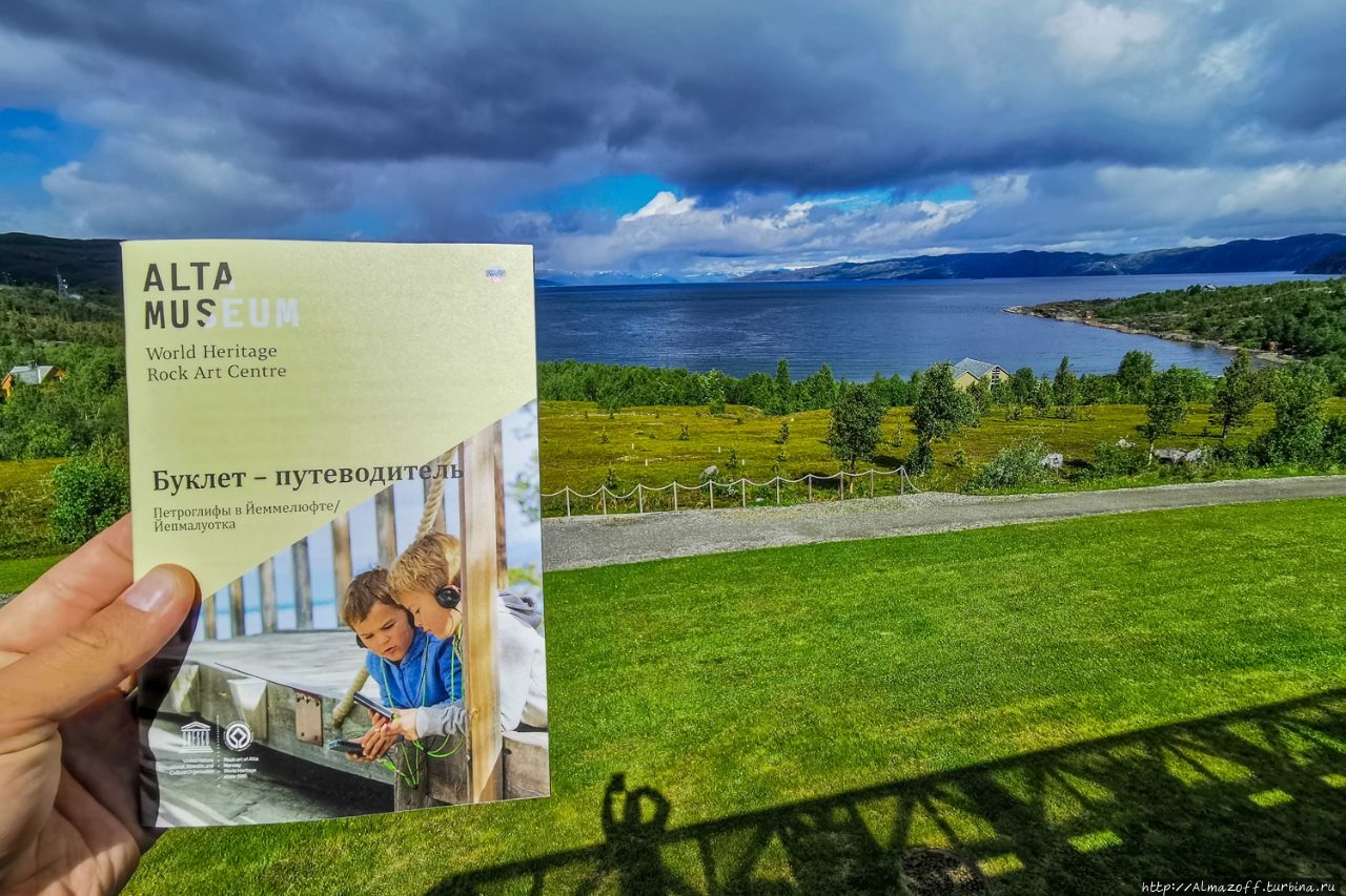 "Эта группа петроглифов в Алта-фьорде, близ Северного полярного круга, является следами, оставшимися от поселения, существовавшего здесь в период 4200-500 лет до н.э. Тысячи росписей и рельефов существенно облегчают нам понимание того, какими были среда обитания и деятельность человека на Крайнем Севере в доисторические времена."