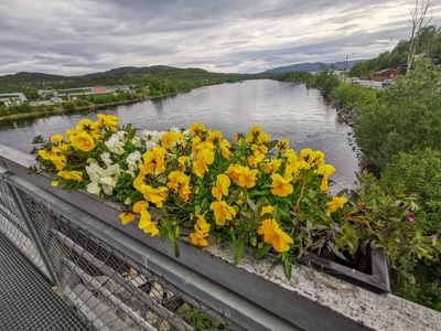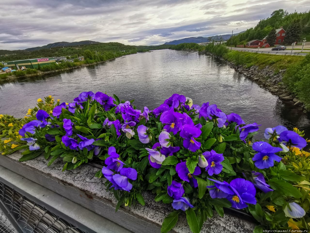 Сфотографировал речку и клумбы с цветами и пошёл в город, прошёл 200 метров и остановил ту же машину с одним и тем же приветливым норгом, который вчера меня подвёз до Скайди! Водитель Олвен говорит, что провинция Финнмарк очень маленькая, всегда можно встретить кого-то из знакомых, из Казахстана. Видимо, я очень хотел с ним снова встретиться, поэтому вышел из предыдущей машины.